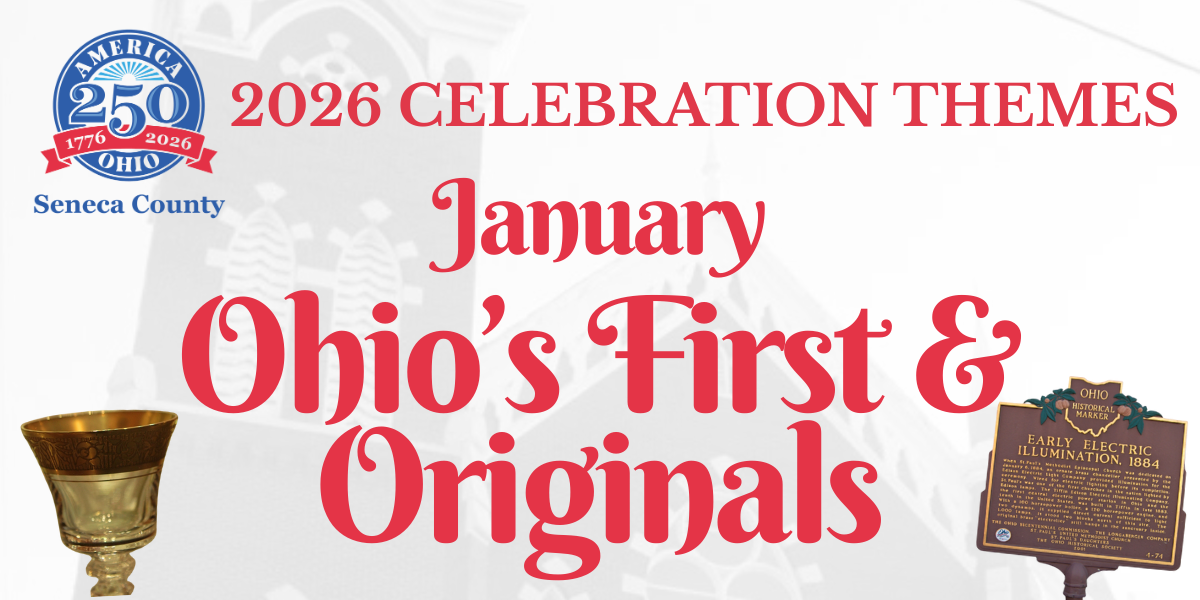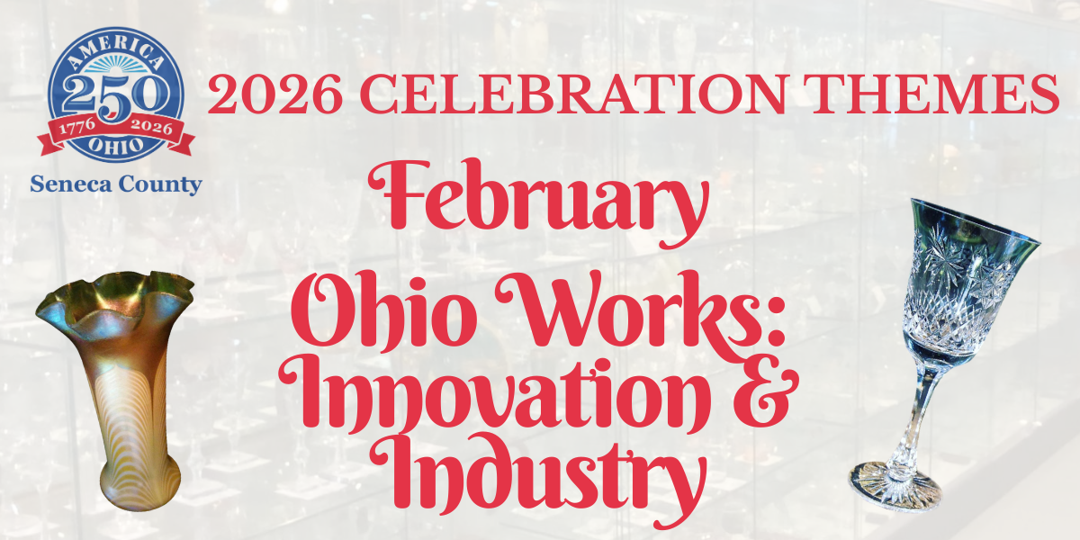 In 2026, we will celebrate the 250th anniversary of the United States by exploring the many ways Ohio and Seneca County have contributed to U.S. History. Each month, a new theme will highlight Ohio’s unique and lasting contributions. Learn more about the 2026 Celebration Themes here.